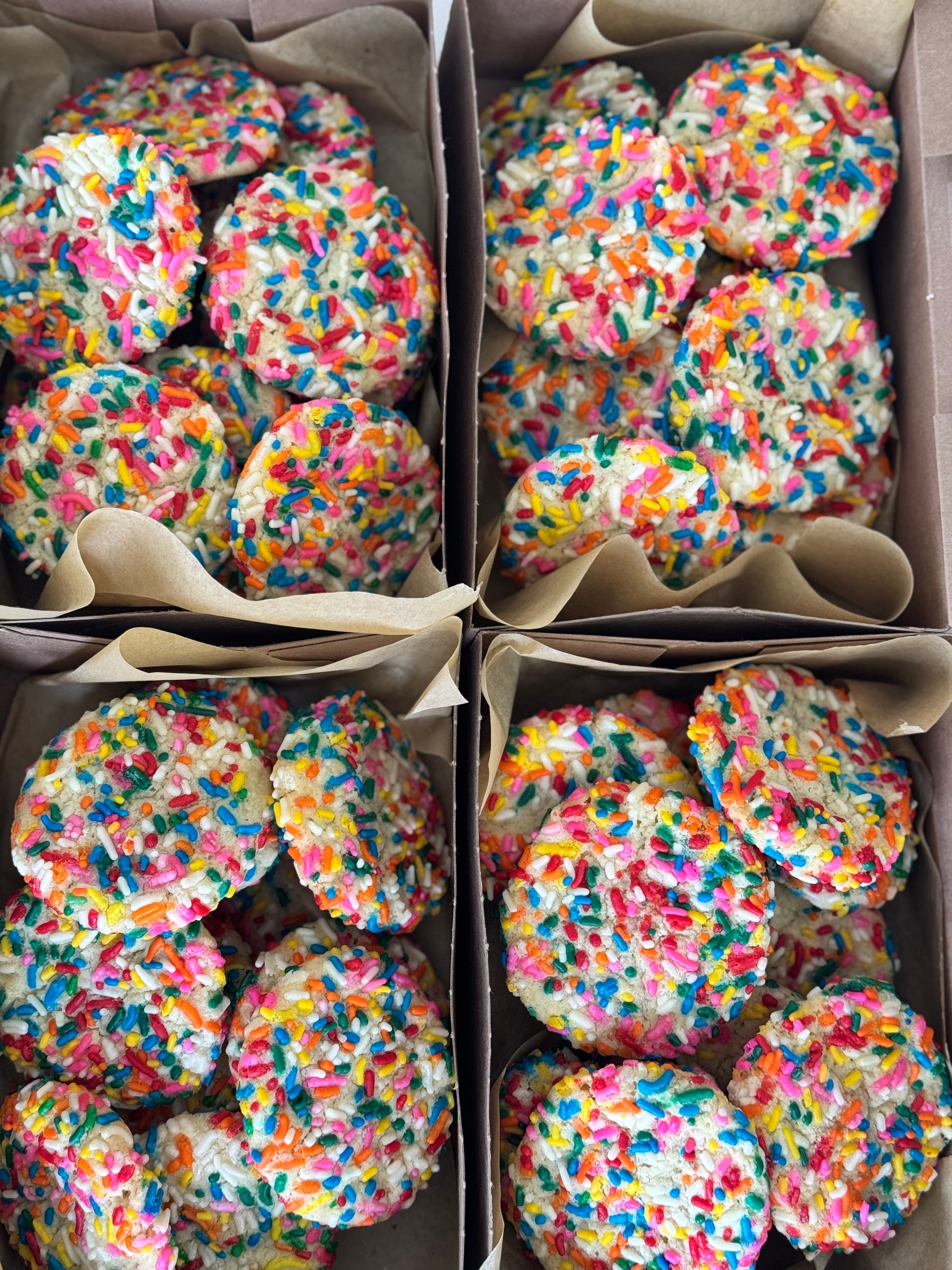 Childhood favorite rainbow sprinkle cookies with a slight traditional almond essence.